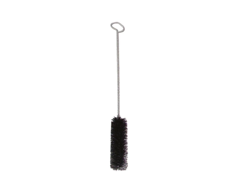 Tenký kartáč s vepřovými štětinami, zkroucenou rukojetí a drátěným očkem. Kartáčová část je dlouhá téměř 75 mm, má průměr přibližně 16 mm a celý kartáč je dlouhý téměř 240 mm.
